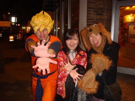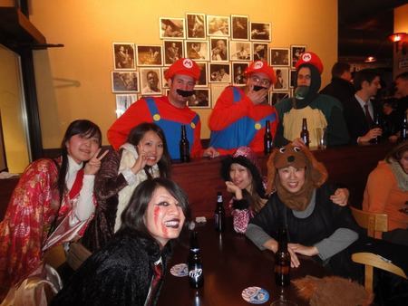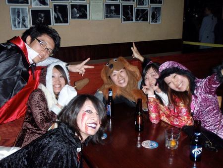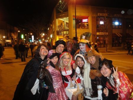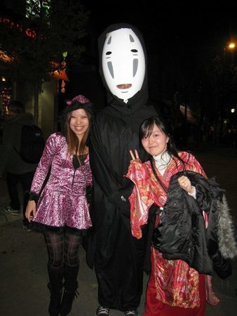 Halloween party in down-town! I wore a Chinese dress. ( I think it's fake)