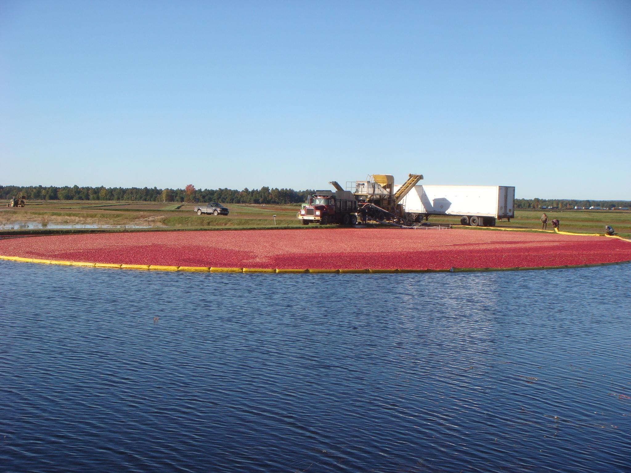 Cranberry harvest!!クランベリー畑に水を入れて、浮いてきた実を集めて収穫してました。