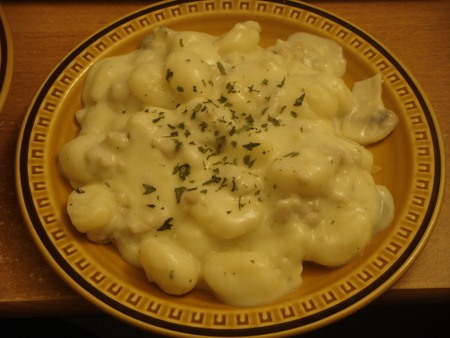 旦那がニョッキ(ポテトのパスタ)を食べたことが無いと言うことで、今夜はクリームパスタならぬクリームニョッキ(笑)