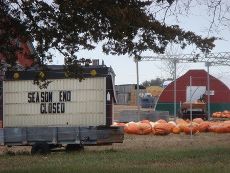 やっと着いたと思ったら、看板に今年の営業は終了と書いてありました!!(T_T)ショック~仕方なく近所のFarmers' Marketにて小さなSquashをいくつか買って帰りました。