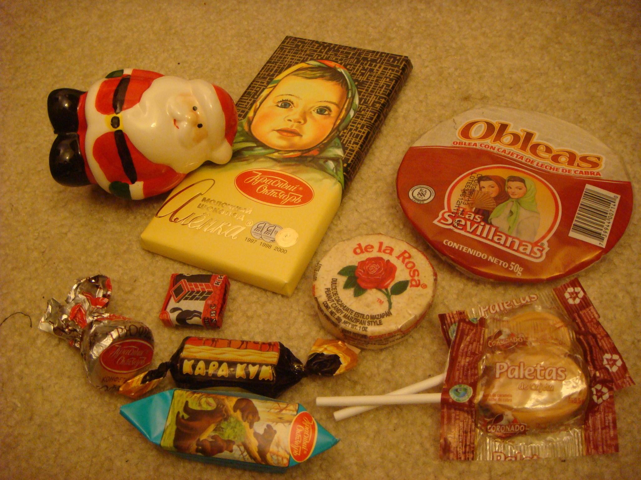 masami 実は、この写真のお菓子の半分はロシアのモノだった。コメントに書き忘れてしまいました。(汗)なんかねぇ~メキシコのお菓子だけど。。残念ながら私の口には合わなかったよ(^^;)