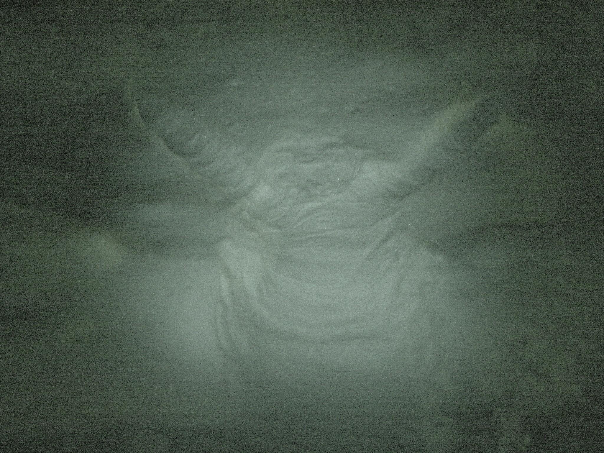 これ、な~んだ? 正解は。。私が雪の上に横になって出来た跡でした(笑)夜にアパート前でくだらないことしてしまったー(汗)なんだか、後頭部の跡が顔っぽく見えるのは気のせいかしら。。?