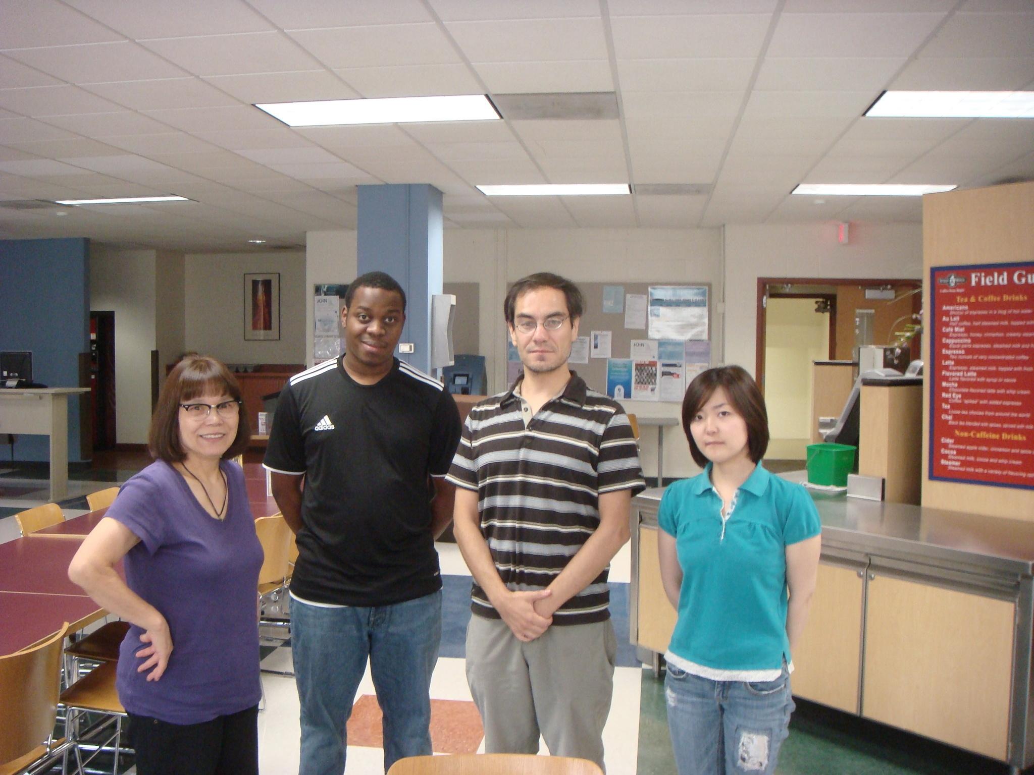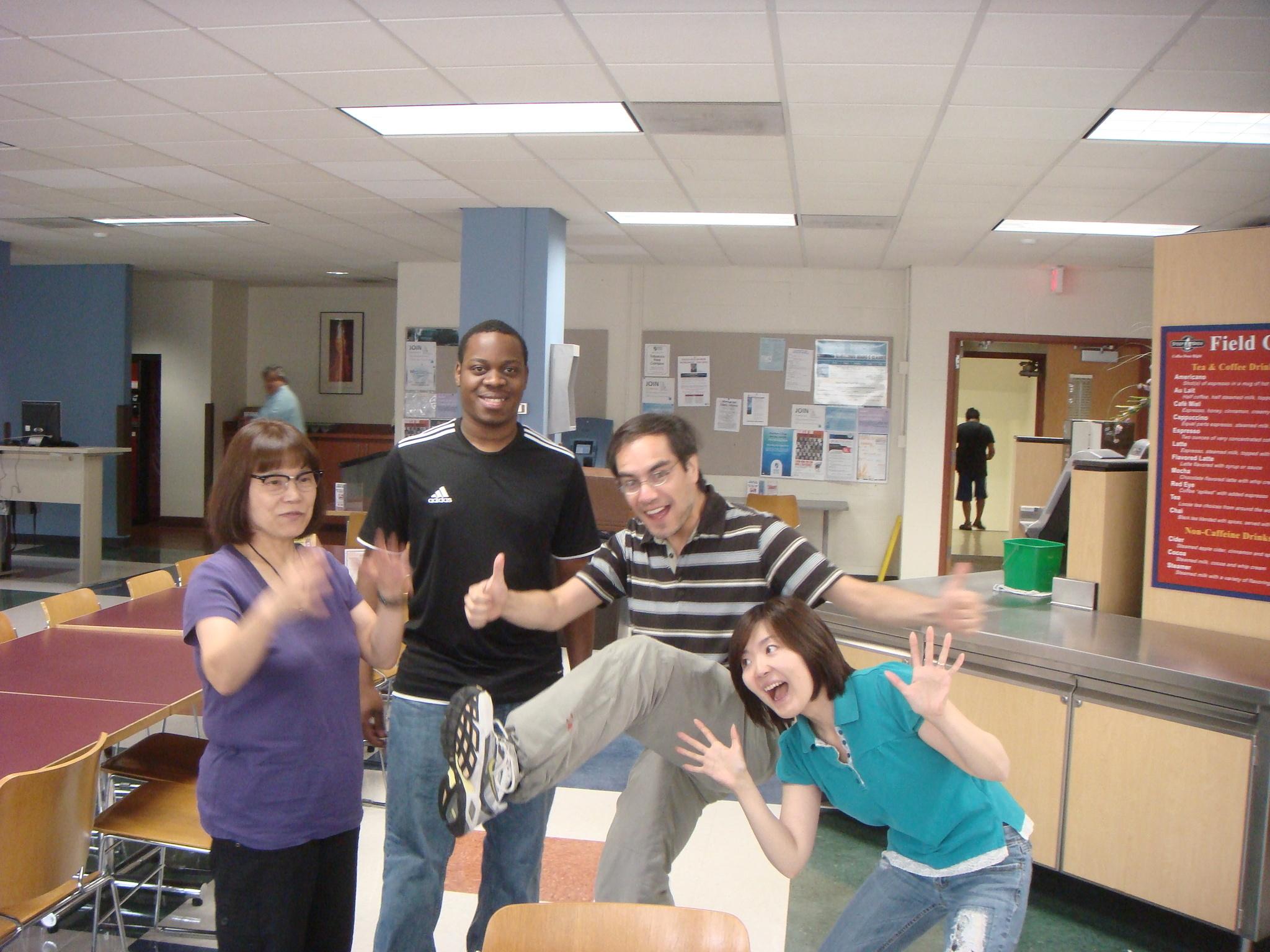 今日はグループワーク!クラスで発表するプレゼンテーションに向けて、4人で話し合い。左からHyo(韓国)、Kevin(フランス)、Jorge(チリだったかな?)み~んな個性的で面白いメンバーです。結構話が脱線するけど、今のところ順調に進んでます!