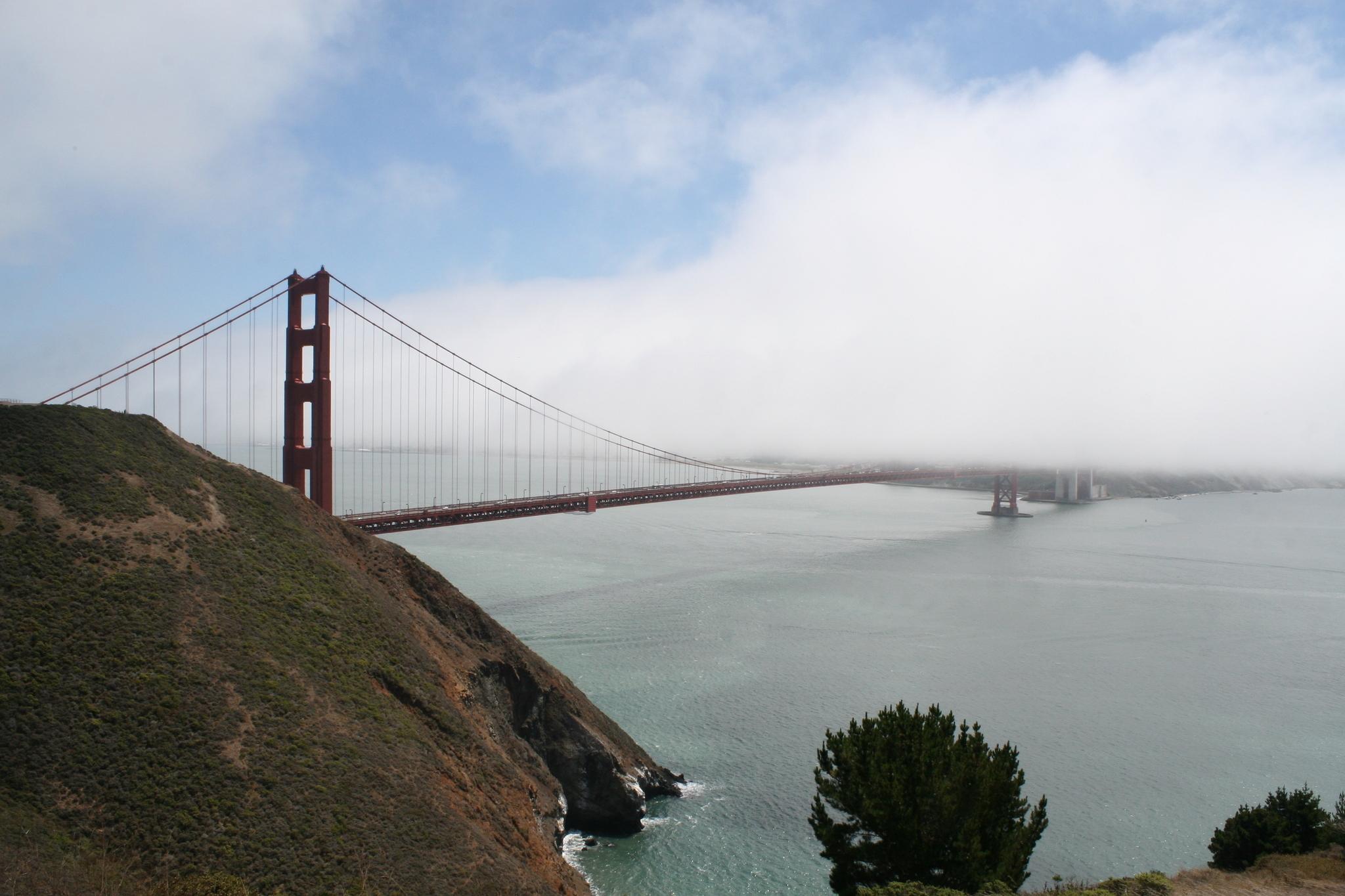 近くにある丘から撮った写真。San Franciscoは山と海に囲まれているから霧が多くてハッキリと橋が見れる事って珍しいらしい。今回も霧で奥の方が隠れてしまってます。