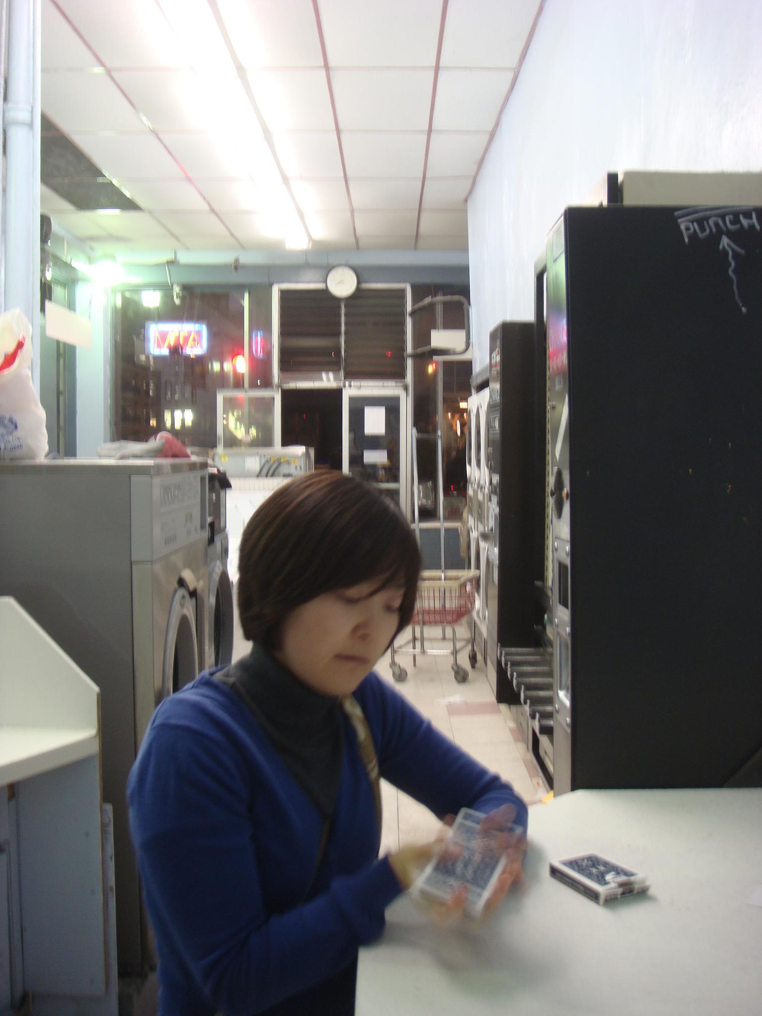 夜はホテル近くのコインランドリーにて洗濯。その間、持参したトランプでゲーム~(写真がブレちゃってる)