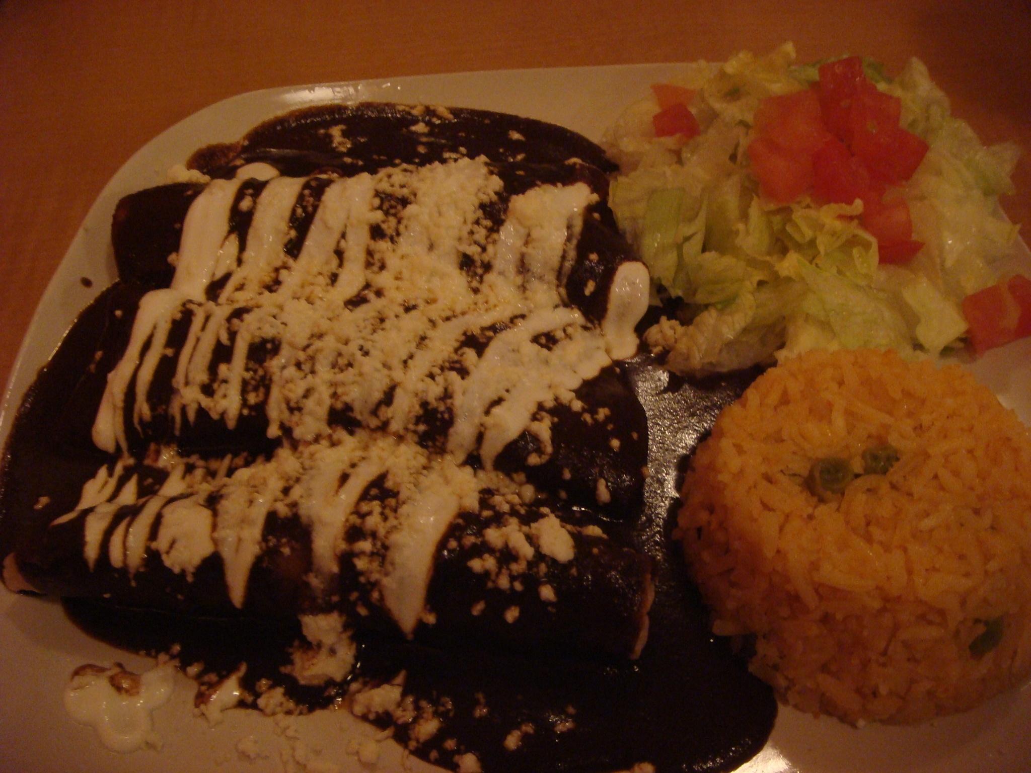 今日はメキシコ料理のレストランへ行ってきたんだけど、この茶色っぽいソースがチョコレート味だった(汗)まぁ、すっごく苦いチョコレートって感じだったんだけど。正直言って美味しくなかったよ(><)