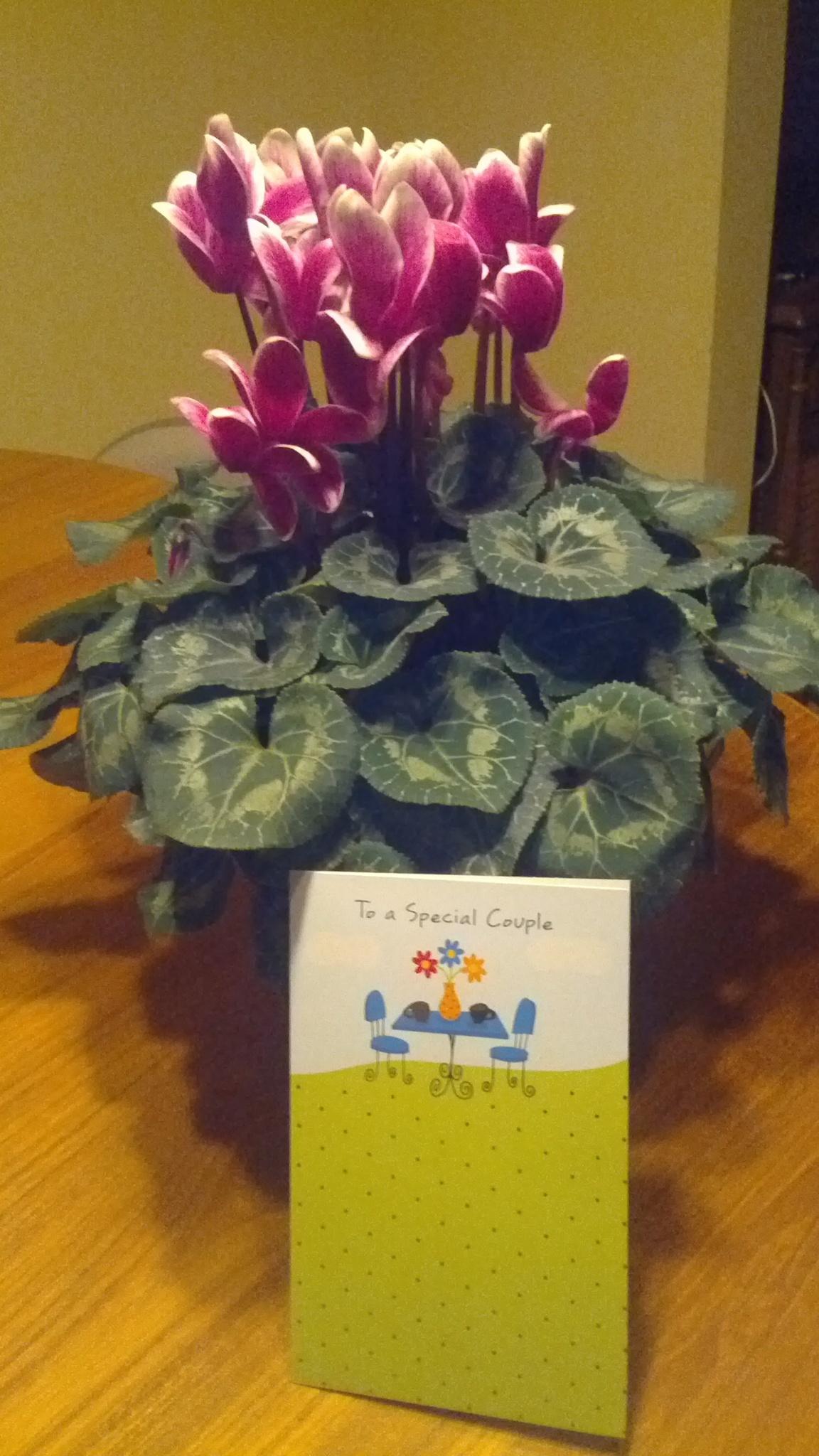 4年目の結婚記念日!!旦那さんからお花を、義理の両親からはカードを頂きました(^▽^)