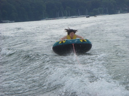 今日は旦那の友達の船でアクテビティ!ゴムボート見たいな丸い風船に乗って爆走!!この日はすっごく楽しかったんだけど、翌日悲惨なことに(笑)上半身が筋肉痛で椅子の立ち座りすら大変(泣)
