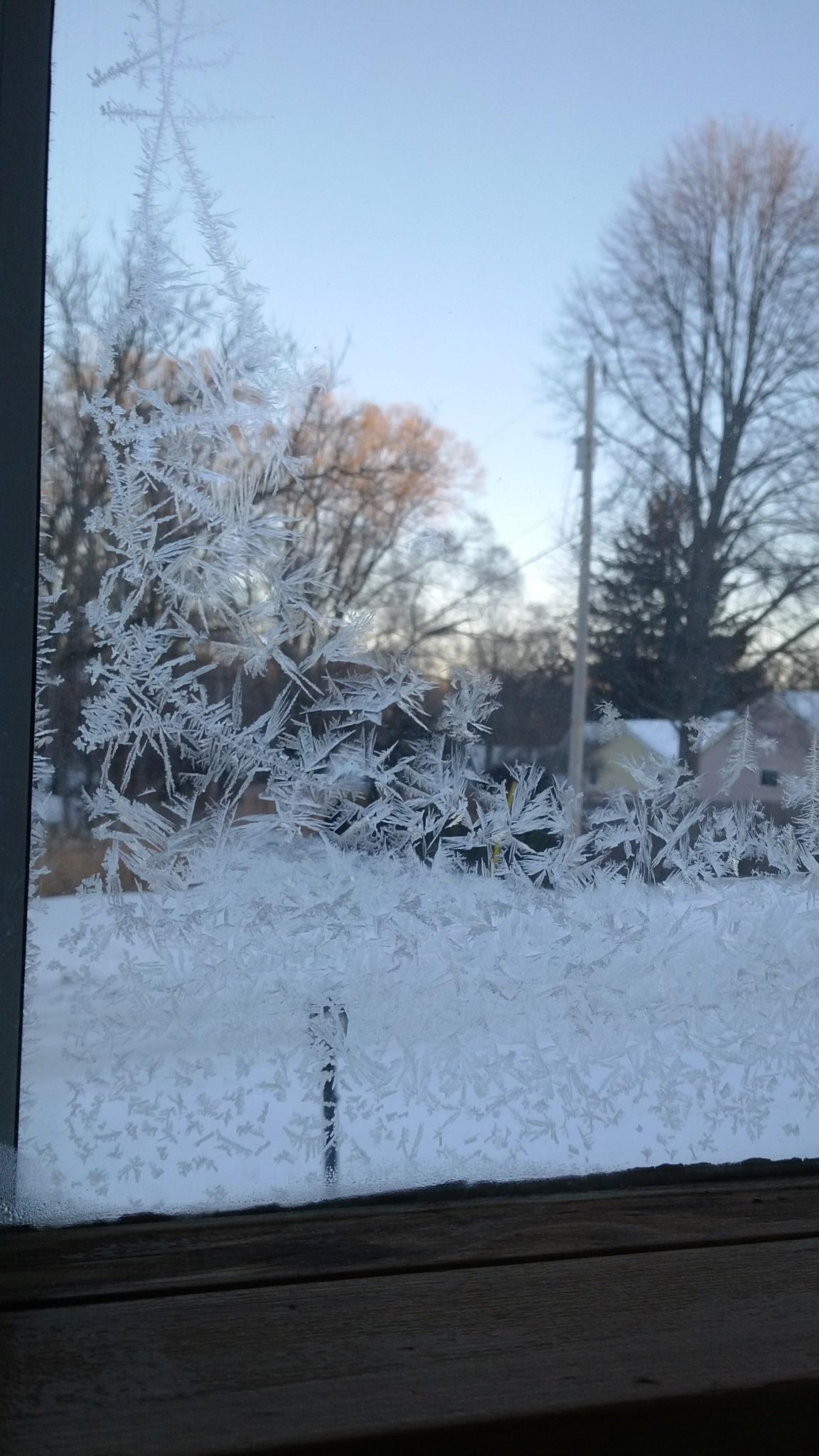 本日の気温マイナス26°C 寒すぎるので英語のクラスが休講になりました。窓が凍ってしまったよ~