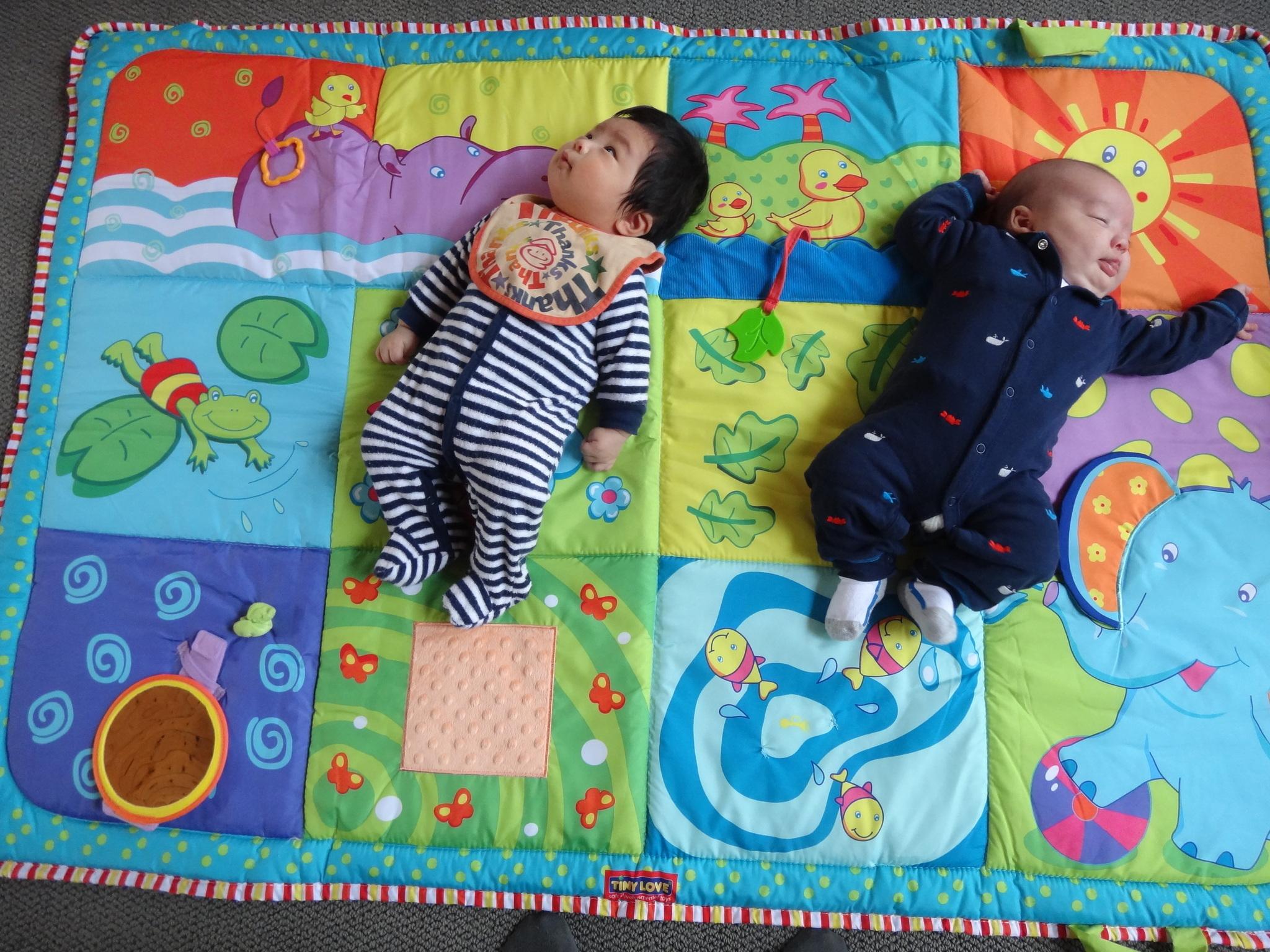 1ヶ月先輩の赤ちゃんとほぼ同じ大きさの我が息子にびっくり!!そして、彼の顔にも(笑)