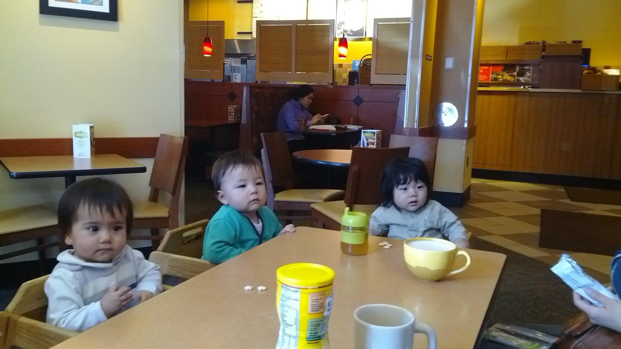 今朝はカフェでおしゃべり!私以外はみんな子ども連れだったけど、どの子も可愛くてお利口さん