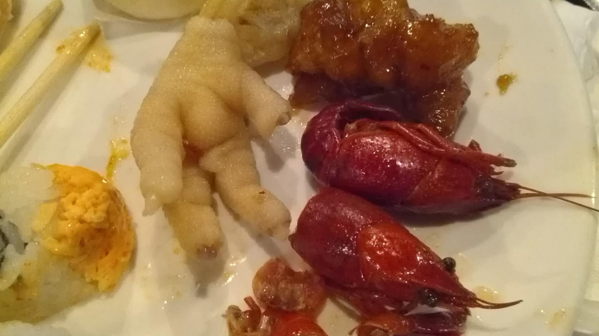 今日はこっちで知りあったお友達の送別会に行ってきましました。場所波食べ放題のレストラン!取り敢えず食べた事のない珍しいものをと思い、ザリガニ?と鶏足を食べてみた。味は。。まぁ、一度食べたら良いかなって感じでした。(笑)