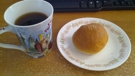 今朝はコーヒーと手作りアンパン!だけど、このパン固い(笑)次回は違うレシピで挑戦してみましょ!