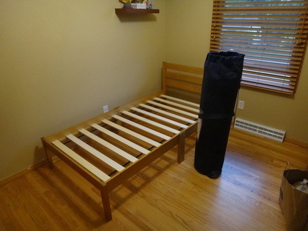 ベッドを買いました。今のベッドはお腹の重い私にはちょっと高すぎるので、当分はこちらを使うつもり。そして、出産後ももちろん赤ちゃんと一緒の部屋で寝起きする予定~