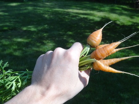 我が家の畑から収穫しました人参です!まだ小ぶりだけど出来たぞー!!今夜頂きまーす。さて、葉っぱはどう料理しようかしら?