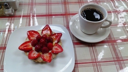 このタルト美味しい!!結構大きいけどペロリと食べてしまったよ。糖尿病に気をつけないといけないのになぁ(汗)