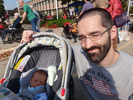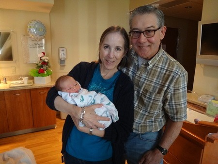先週の金曜日に病院で妊娠高血圧症候群(妊娠中毒症)の疑いがあると診断を受け、今朝も再検査に行ってきた。その時は、水曜日の検査まで様子見と自宅安静と言われ帰されたが、すぐに電話があり尿の淡白量を調べるから採取して欲しいと言われて、道具一式を病院へ受け取りにもどる。その日の午後、自宅安静のためベッドでゴロゴロしていると、買い物に出かけた旦那がずいぶんと早くに帰ってきた。そして彼から「Don't Panic!」と言われ、まさか。。と嫌な予感。「今日赤ちゃんを出産します!」と言われる。もちろん私はPanic!!!そのためか、出血(おしるし?)が出た。その後は、病院からの連絡をひたすら緊張しながら待つ2人(笑)この写真は、緊張のあまり何か食べてないと落ち着かない旦那さん。