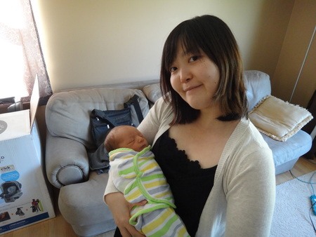 昨日の夜10時から陣痛促進剤により、今朝11時50分頃に3280gの男の子を無事に出産しました。37週と4日と少し早い時期の出産だったけど、もうすでに3000g越えてた(笑)私はてっきり2000gちょっとだと思っていたので、赤ちゃんをお腹の上に乗せてもらった時に「あれ?重い」とビックリした!さすがはハーフの子だわ(^^;)