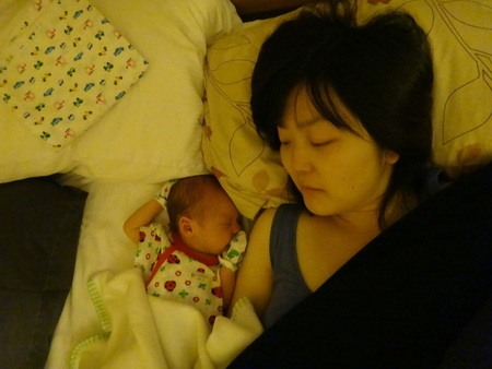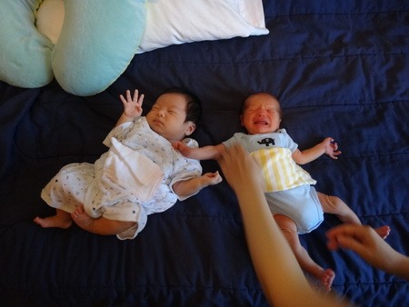 彼は添い寝が落ち着くらしい。。だけど、これって危ないからダメみたい(汗)