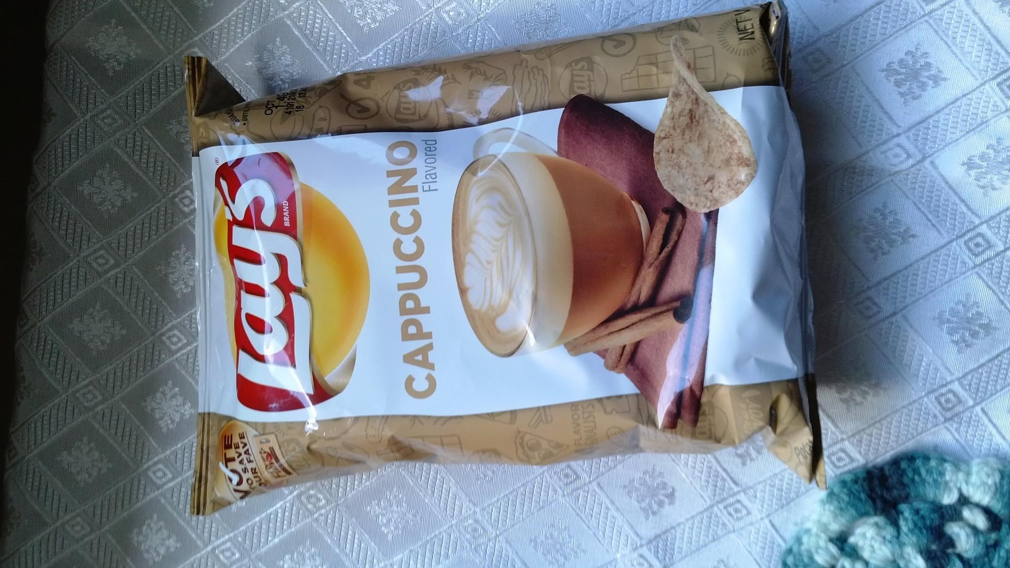 カプチーノ味のチップスを発見!味はシナモンとバターの味が強いけど、全体的には薄味。んーもう買わないかな(笑)