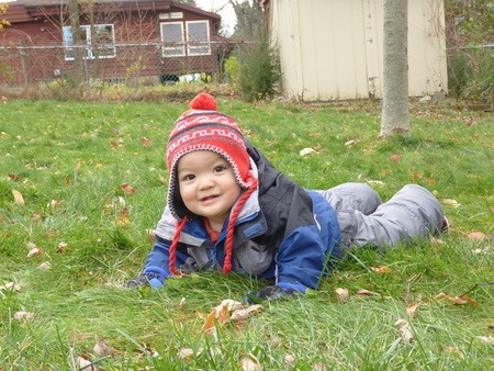 今日は午前中の寒い時間に息子と庭で遊んでみた。