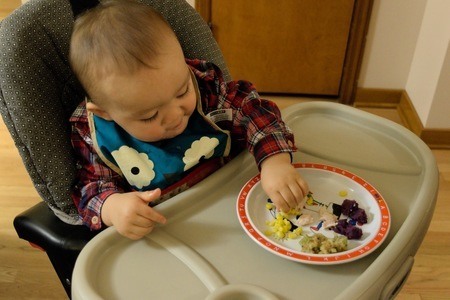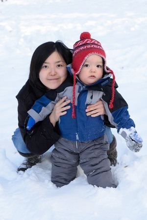 初めての雪遊び〜雪が冷たすぎて痛いのか、直接肌に触れると泣いてました。