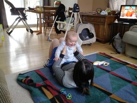 Kanako 赤ちゃんって、こちょこちょ好きだよね~ 後ろのテレビ番組が気になってしまった!w