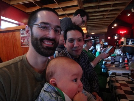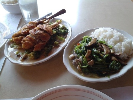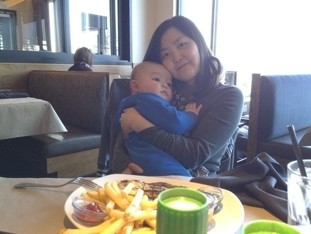 ランチ〜息子が泣きわめいていたので、抱っこしながらの食事(笑)