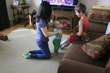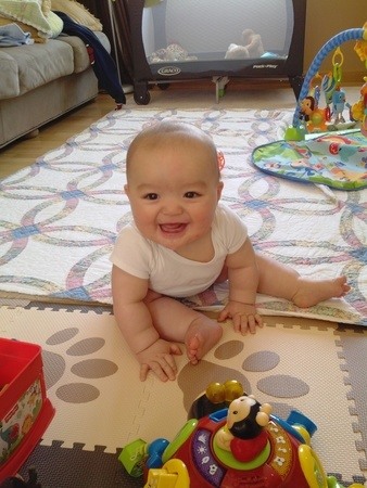 一人遊びさせていたら、いつの間にか座ってた!!偶然だけど、ひとりで座れるようになりました。