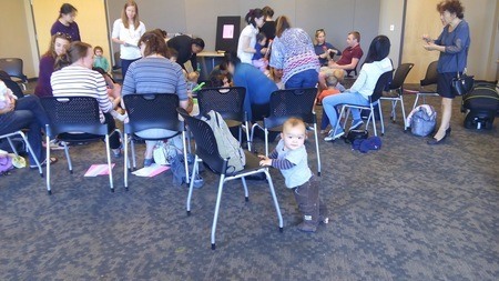 今日は、図書館のストーリータイムへ息子を連れて行ってきました。だけど、大勢の人に慣れていない息子はぐずりだし、ひとりだけ授乳をさせながらの参加(汗)その後もオモチャで遊ぶ他の赤ちゃんたちをよそ目に、ひとりで椅子を移動させながら遊ぶ息子(笑)