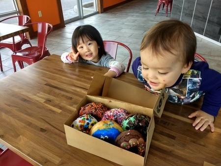 今日は新しくオープンしたドーナッツ屋さんへ行ってきました。凄いカラフル(笑)