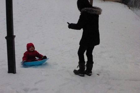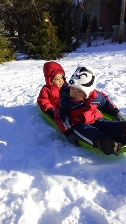ソリ遊び〜楽しくないのか?二人ともカメラを睨んでいるかのよう〜(汗)