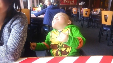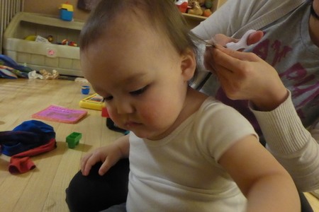 パパの要望で初めてのヘアカット!でも、ほとんど髪が生えてないんだけど(笑)