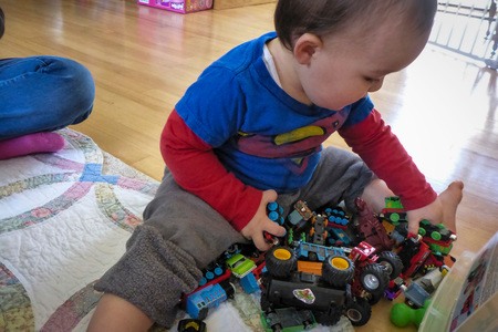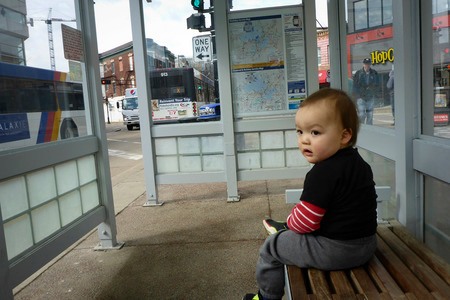 今日は暖かかったので、息子を連れてダウンタウンまで歩かせに行ってきました。たくさんの車に興奮してました!