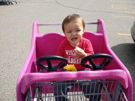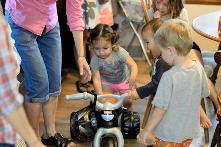 今日はグランパ&グランマのお家で誕生日会!二人からのバイクのプレゼントに大喜び!ところがこの後、いとこの女の子に先乗りされてしまうのでした(笑)