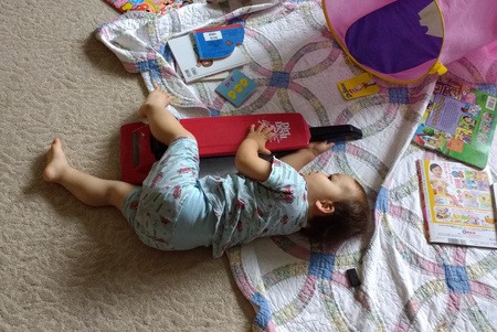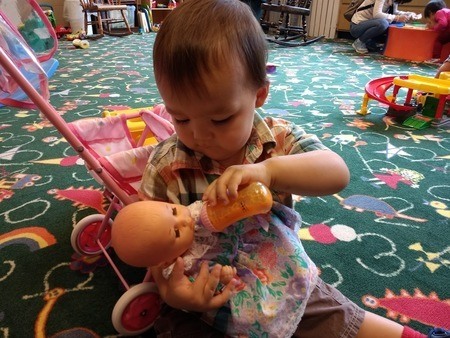 Masami うん、これは私もびっくりしたよ!やれば出来るんだね。だけど、この後におもちゃのミルクを自分の口に持って行ってたよ(笑)