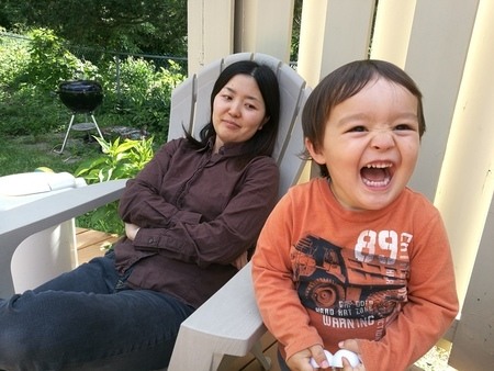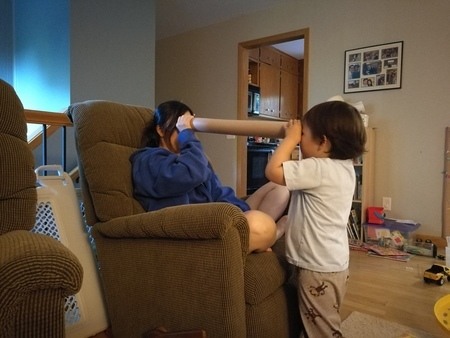 息子「なにがみえる?」私「お目々が見えるよ!」(本当は、手でがっつり抑えてるもんだから、真っ暗で何も見えないんだけどな。。笑)