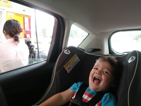 仕事が終わって、ガソリンスタンドにて給油中。それだけの事でこんなにはしゃげる息子は若いな〜(笑)