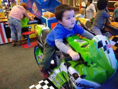 外は雨が降っていたので、室内で遊べる場所へ。久しぶりのChuk e cheeseに喜んでました。